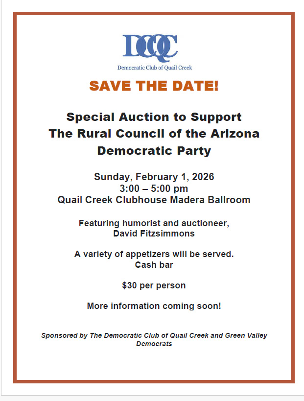 I hope you will join me in supporting this effort with our Arizona Democratic Party Rural Council and our new State Chairwoman, Charlene Fernandez.